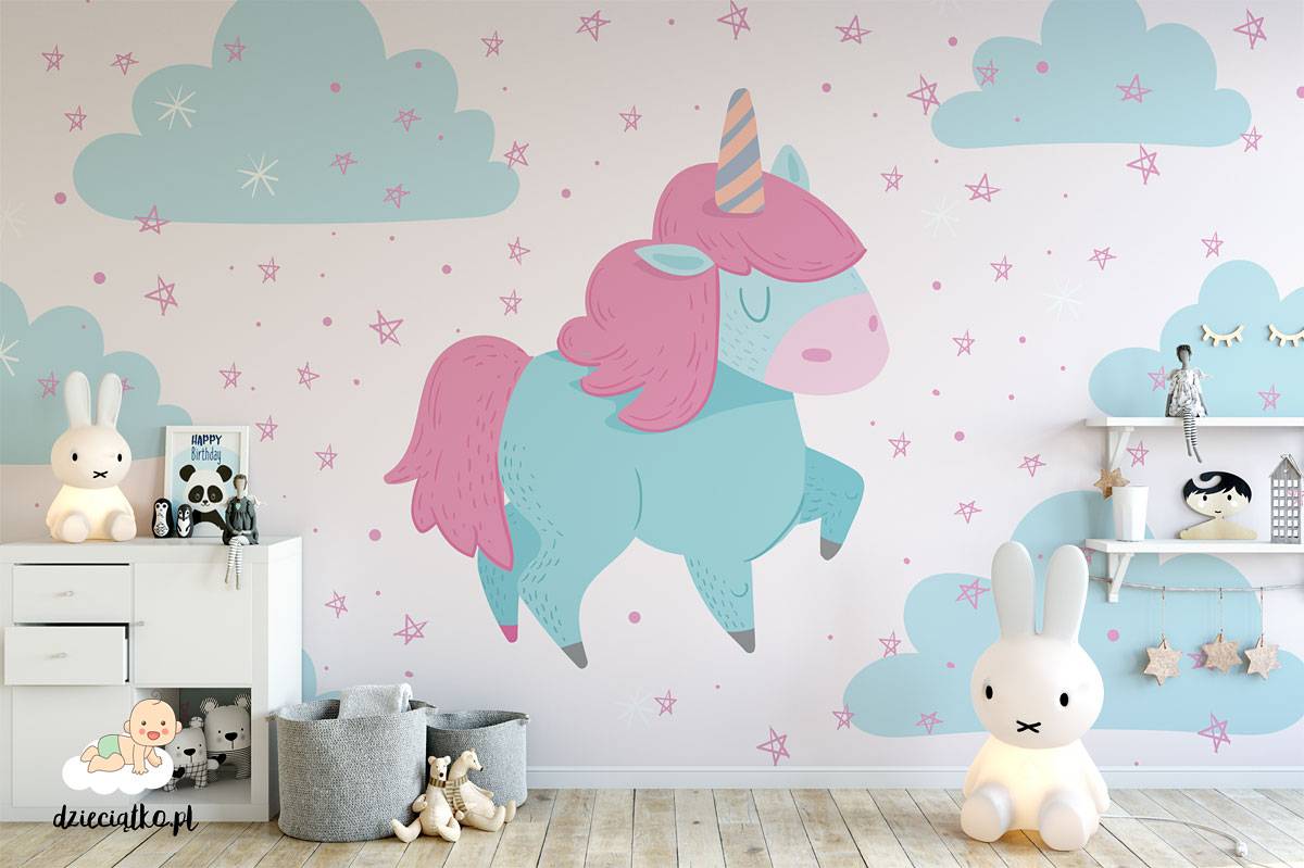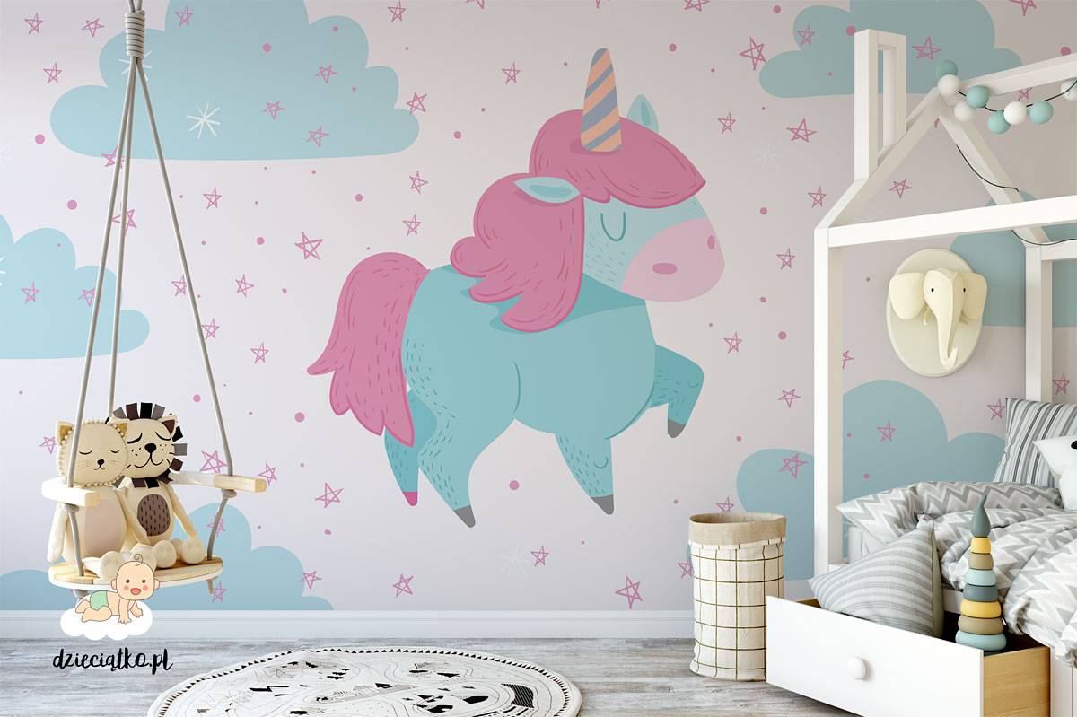 Wysokiej jakości fototapeta z unikatowym wzorem „Miętowa Przygoda”, który znakomicie sprawdzi się w pokoju dziecięcym.