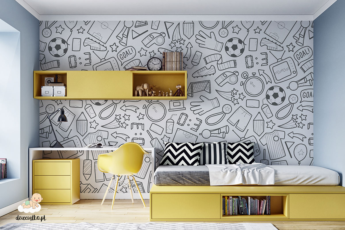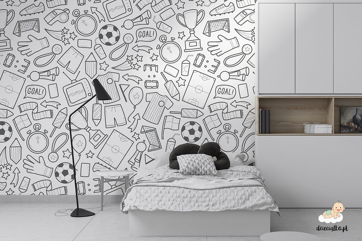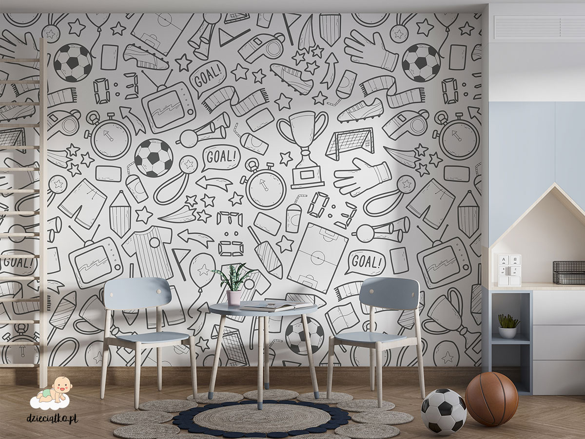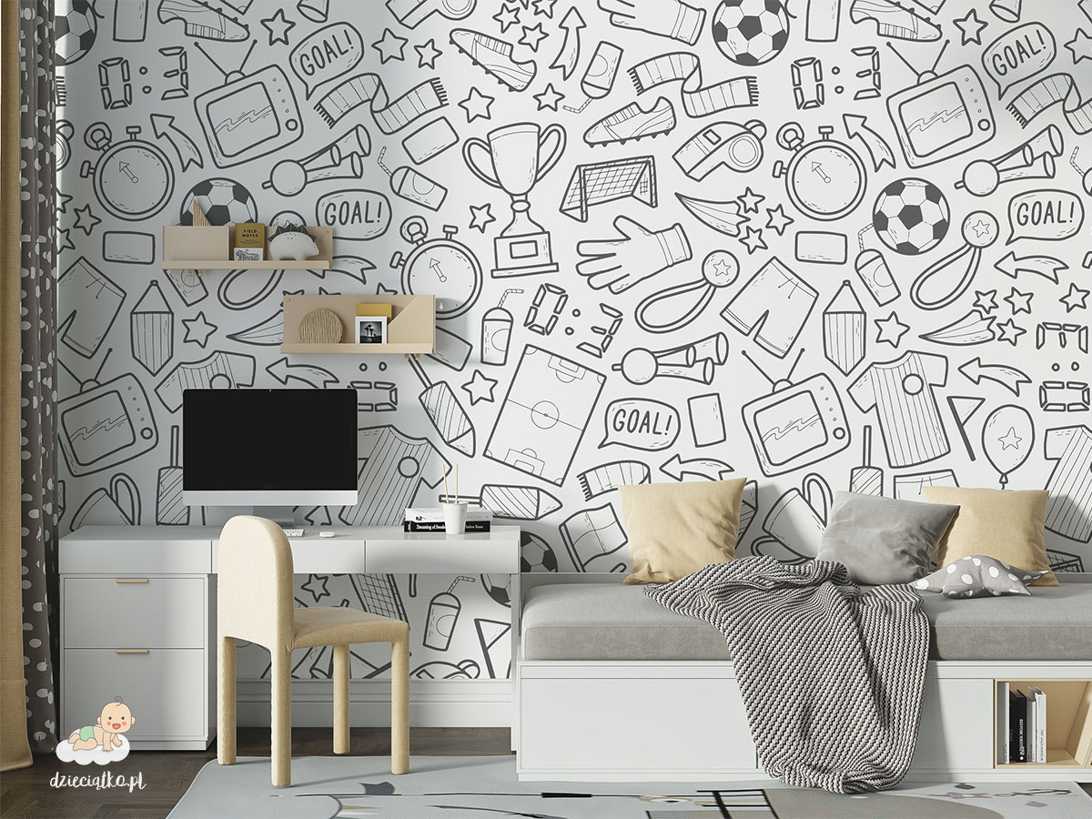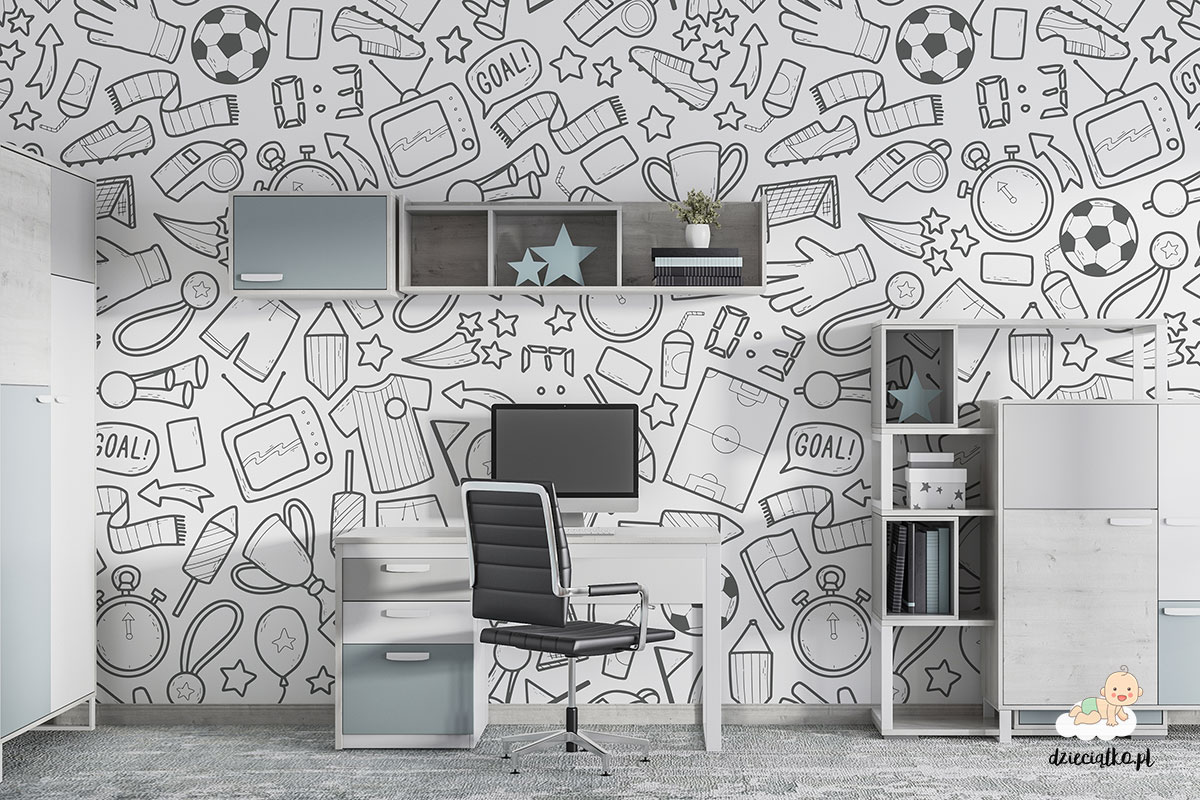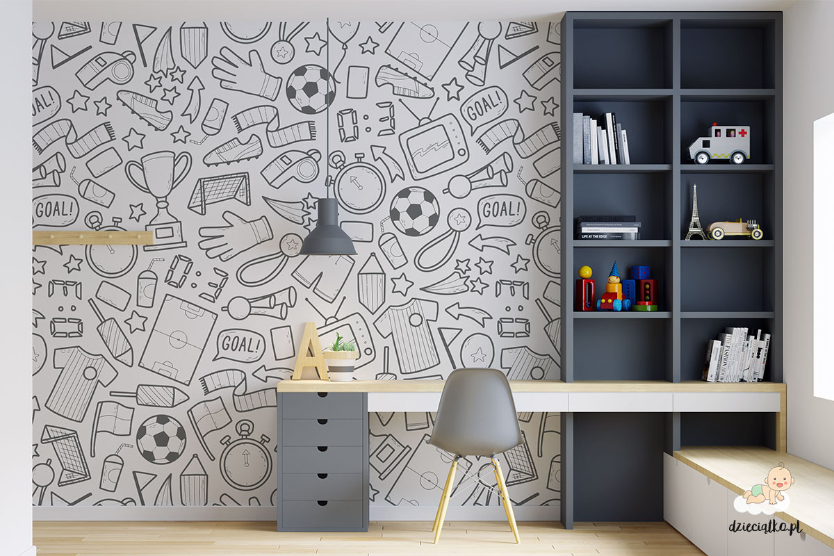 Wysokiej jakości fototapeta z unikatowym wzorem „Piłkarskie gadżety”, który znakomicie sprawdzi się w pokoju dziecięcym.