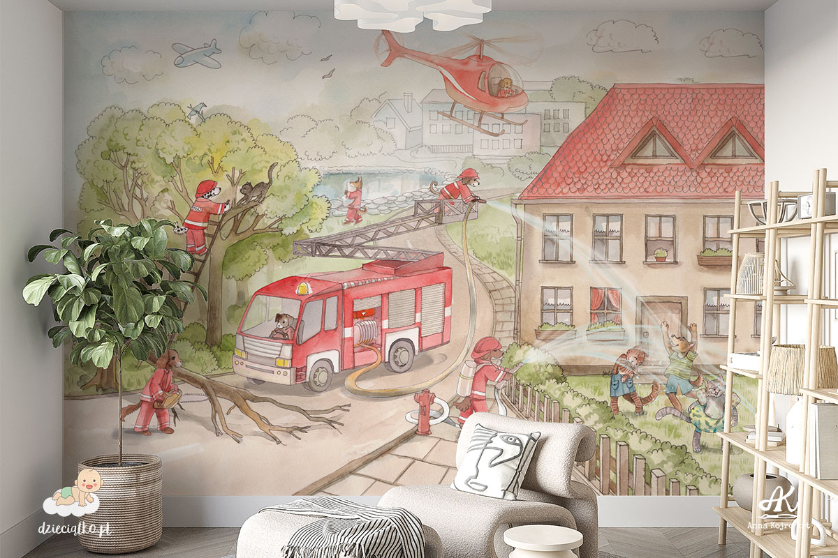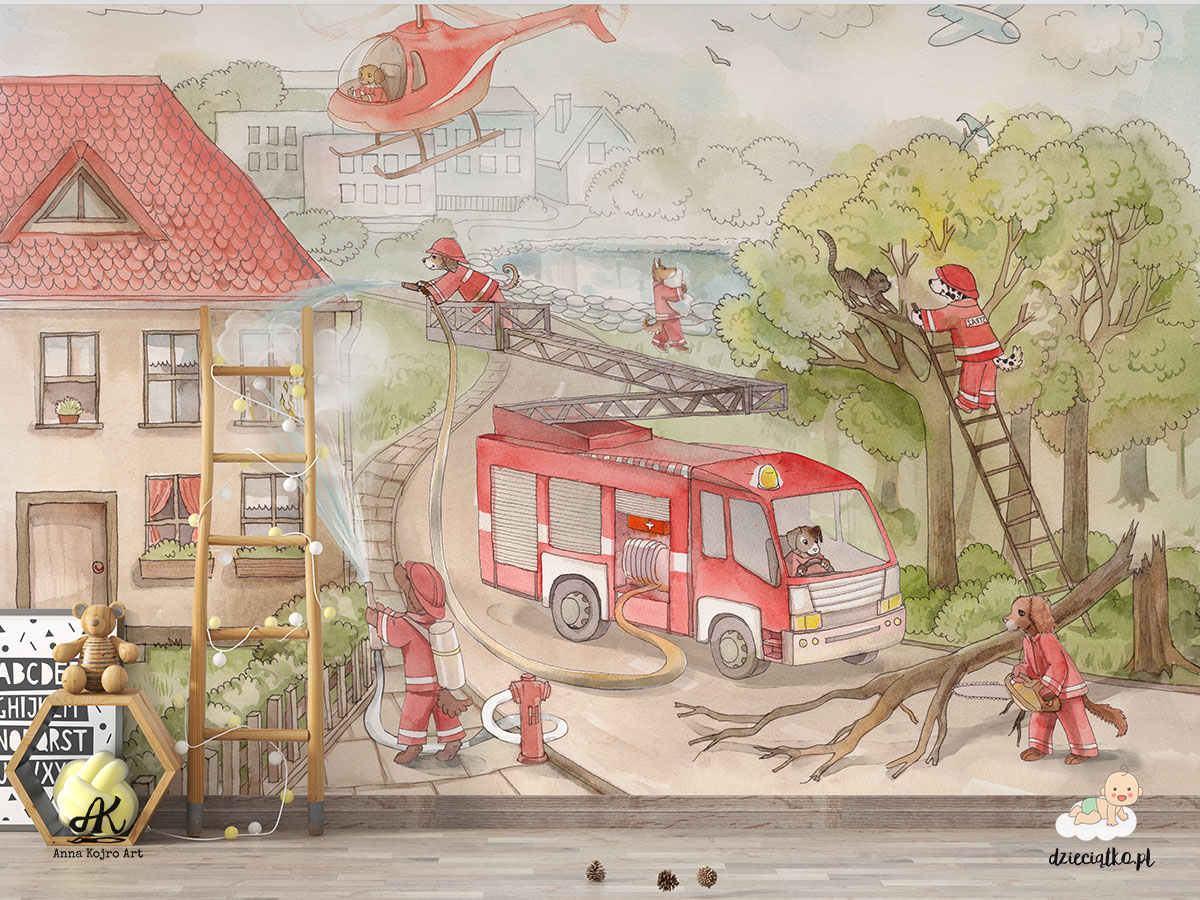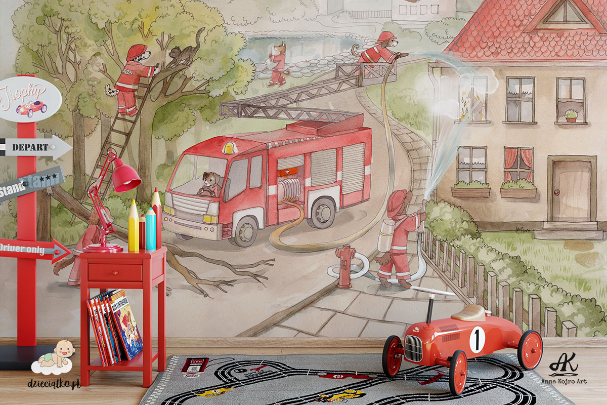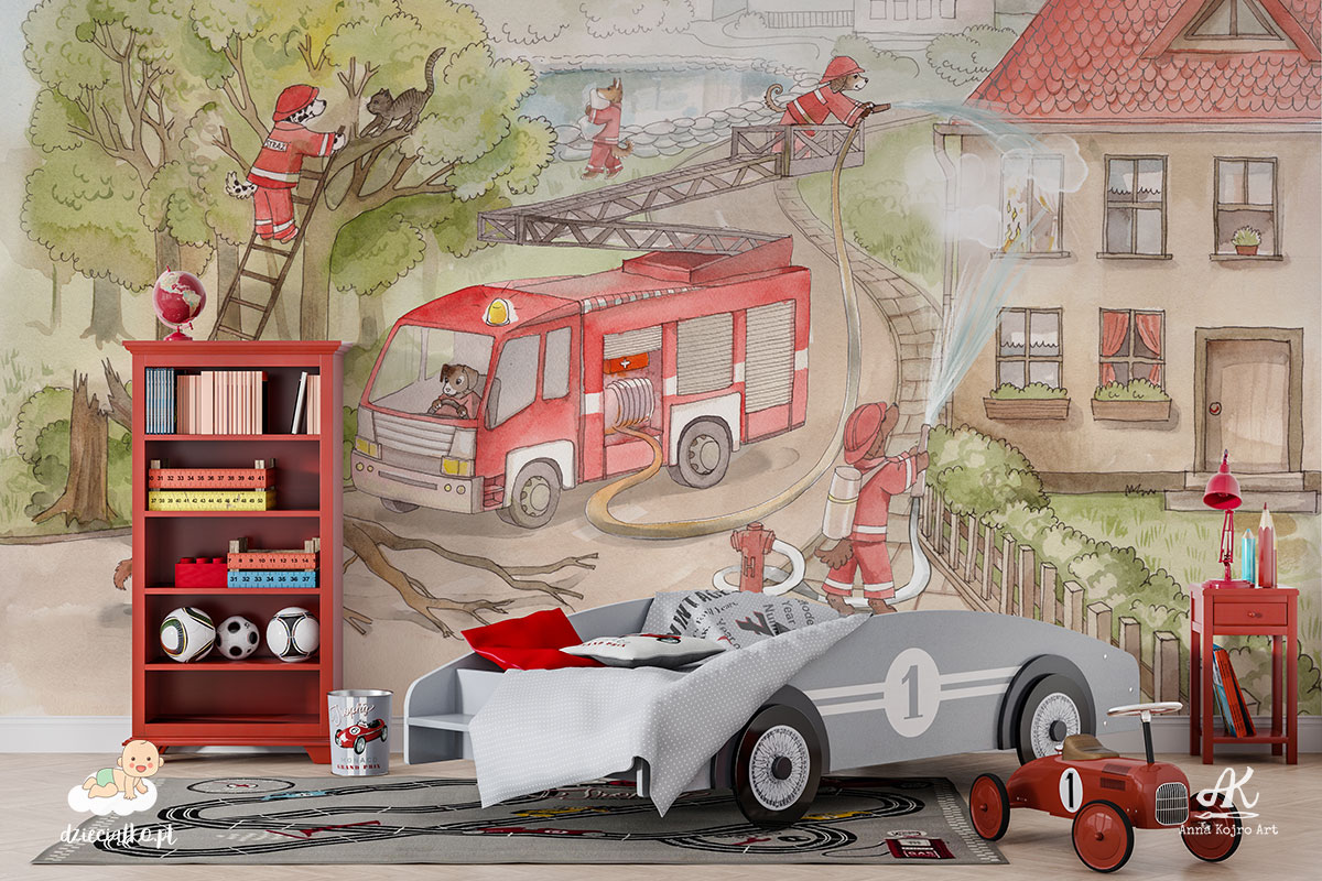 Najwyższej jakości fototapeta z unikatowym wzorem „Straż pożarna”, który znakomicie sprawdzi się w pokoju dziecięcym.