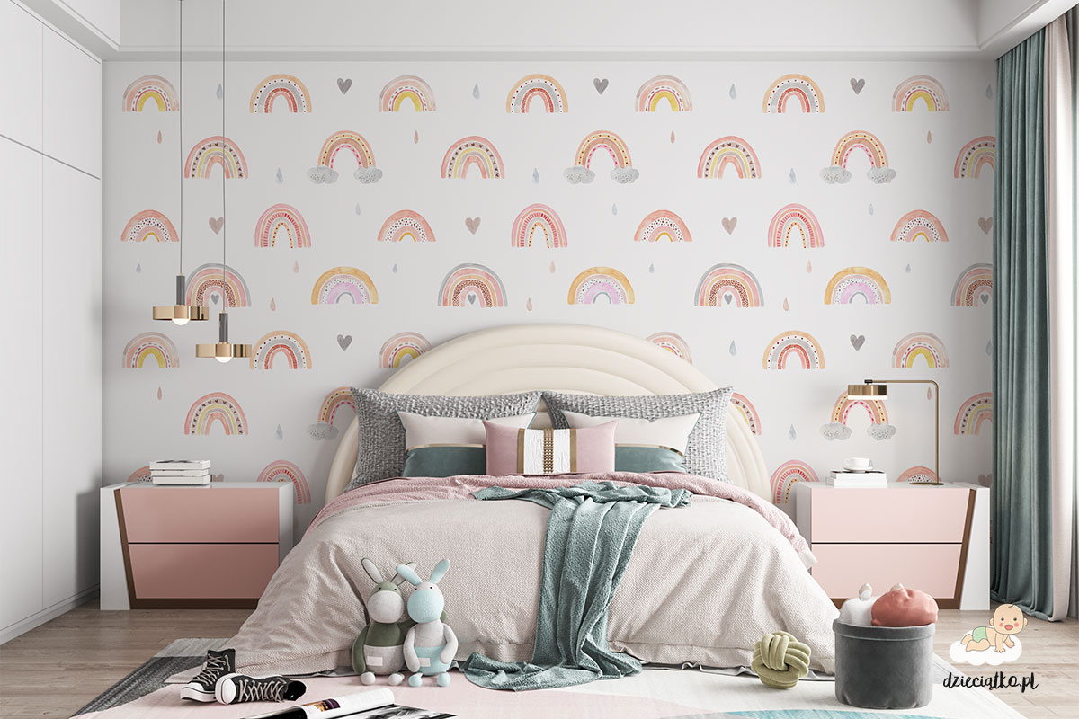 Wysokiej jakości fototapeta z unikatowym wzorem „Tęcza”, który znakomicie sprawdzi się w pokoju dziecięcym.