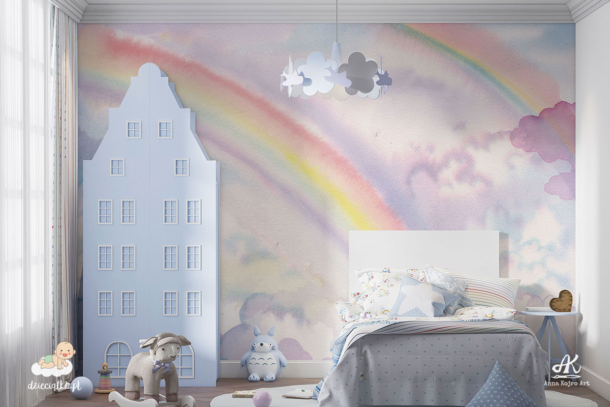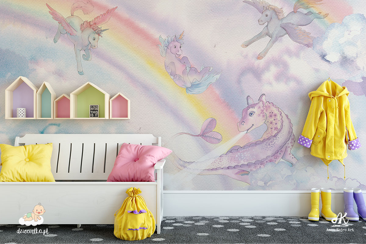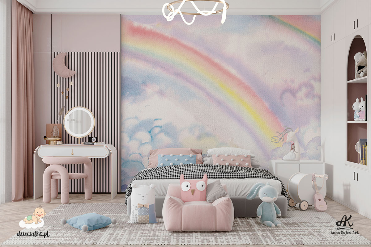 Najwyższej jakości fototapeta z unikatowym wzorem „Tęczowe opowieści”, który znakomicie sprawdzi się w pokoju dziecięcym.