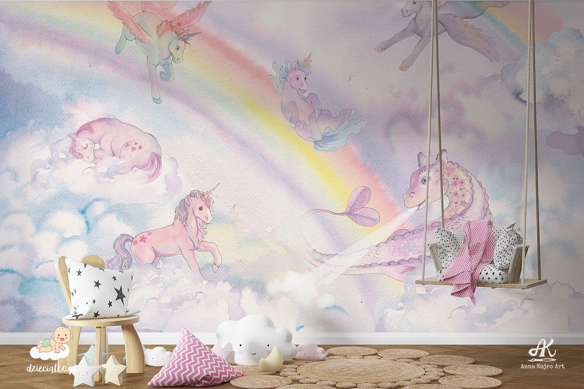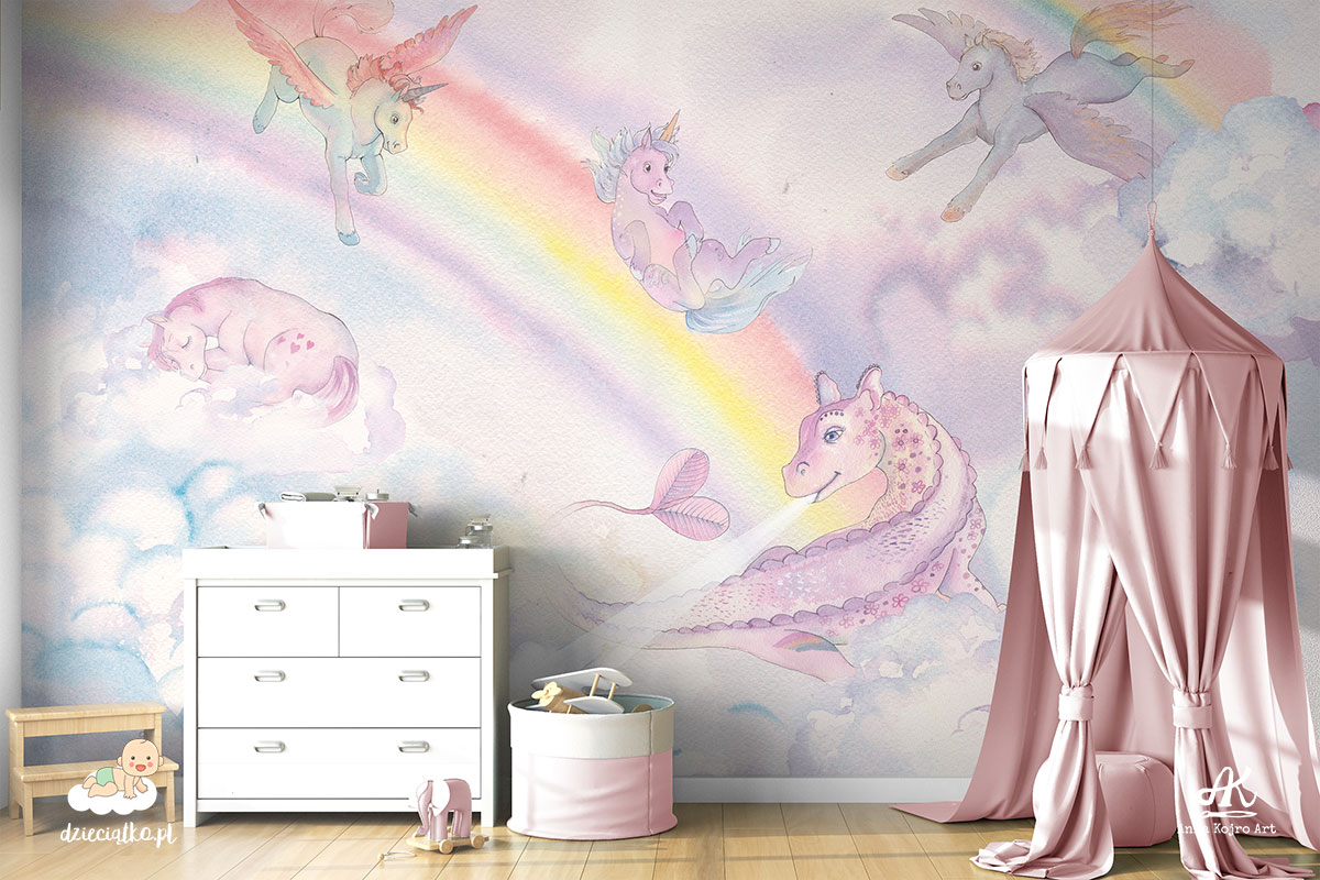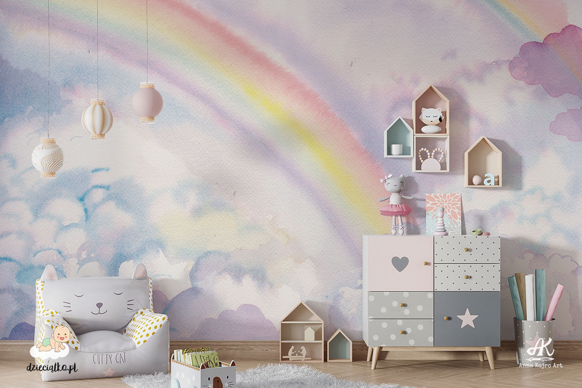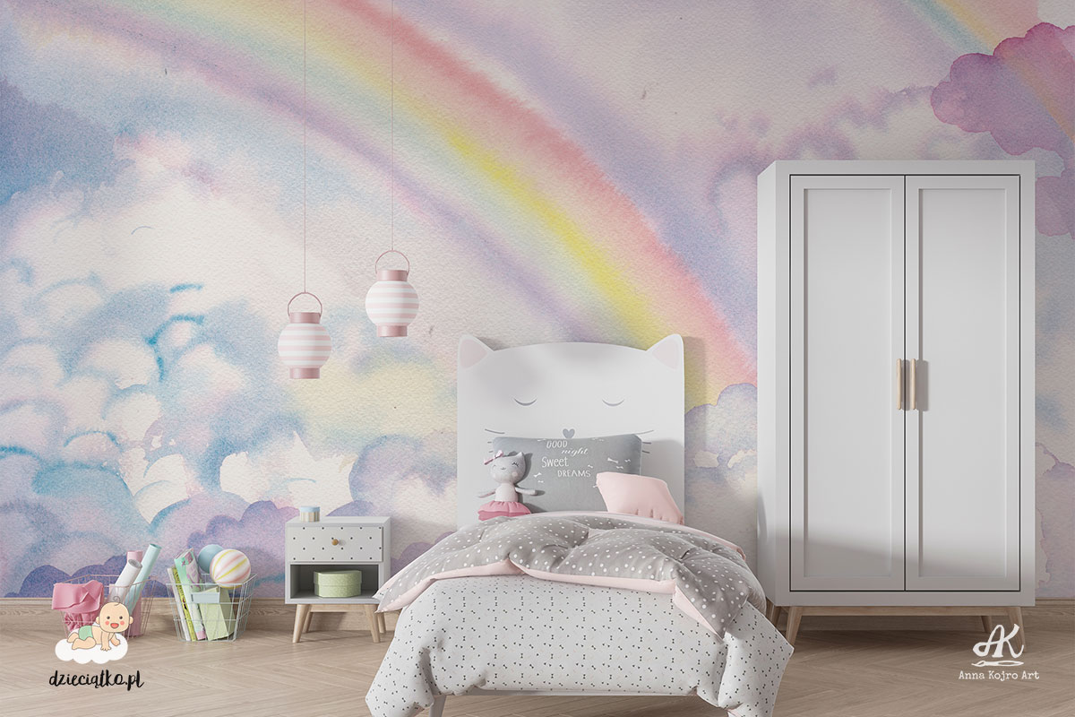 Najwyższej jakości fototapeta z unikatowym wzorem „Tęczowe opowieści”, który znakomicie sprawdzi się w pokoju dziecięcym.