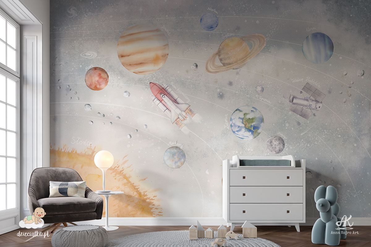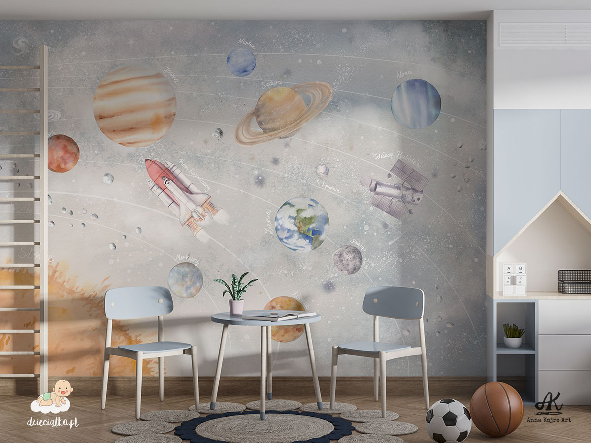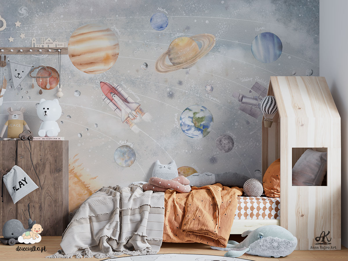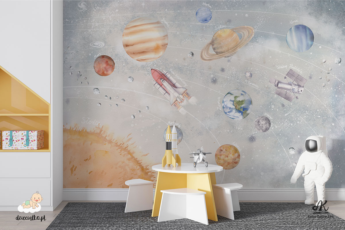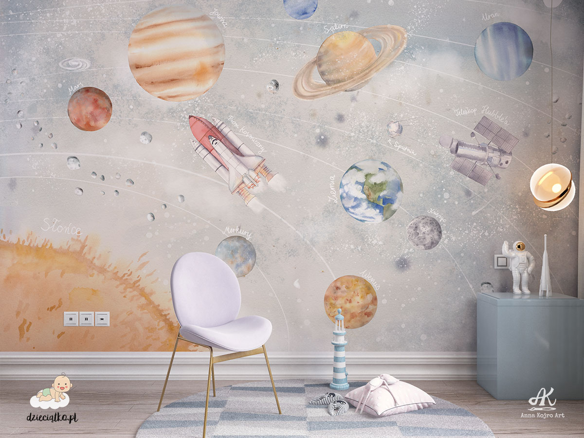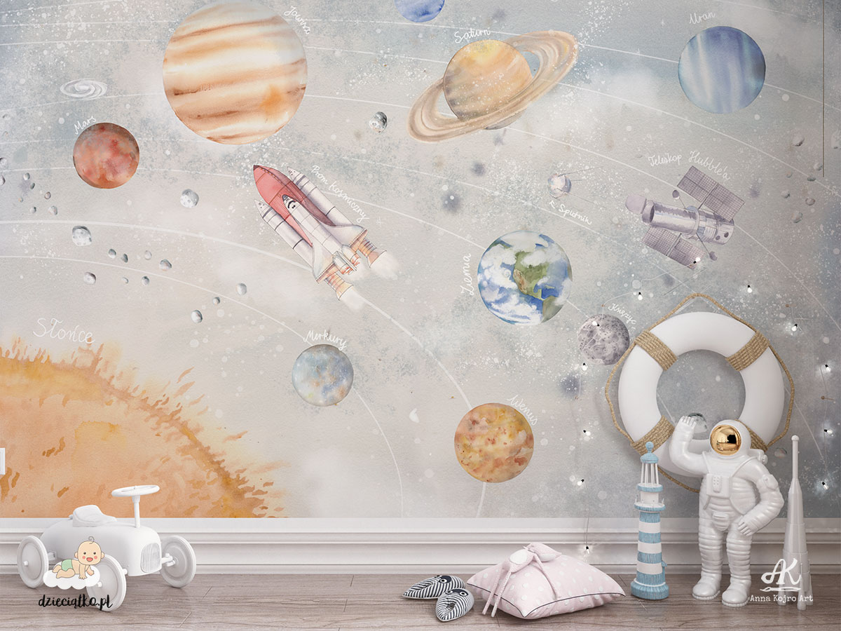 Najwyższej jakości fototapeta z unikatowym wzorem „Układ Słoneczny”, który znakomicie sprawdzi się w pokoju dziecięcym.